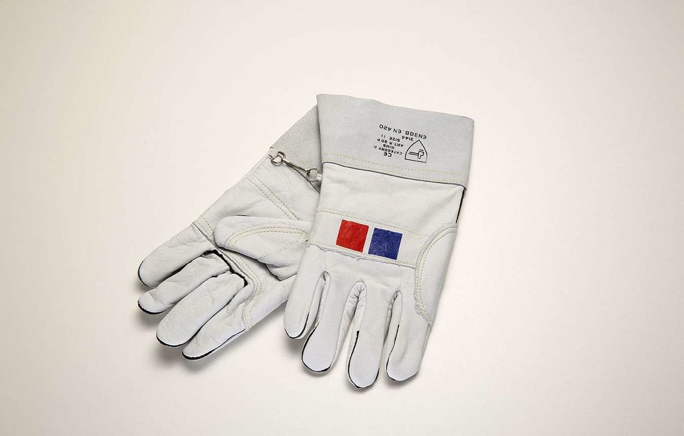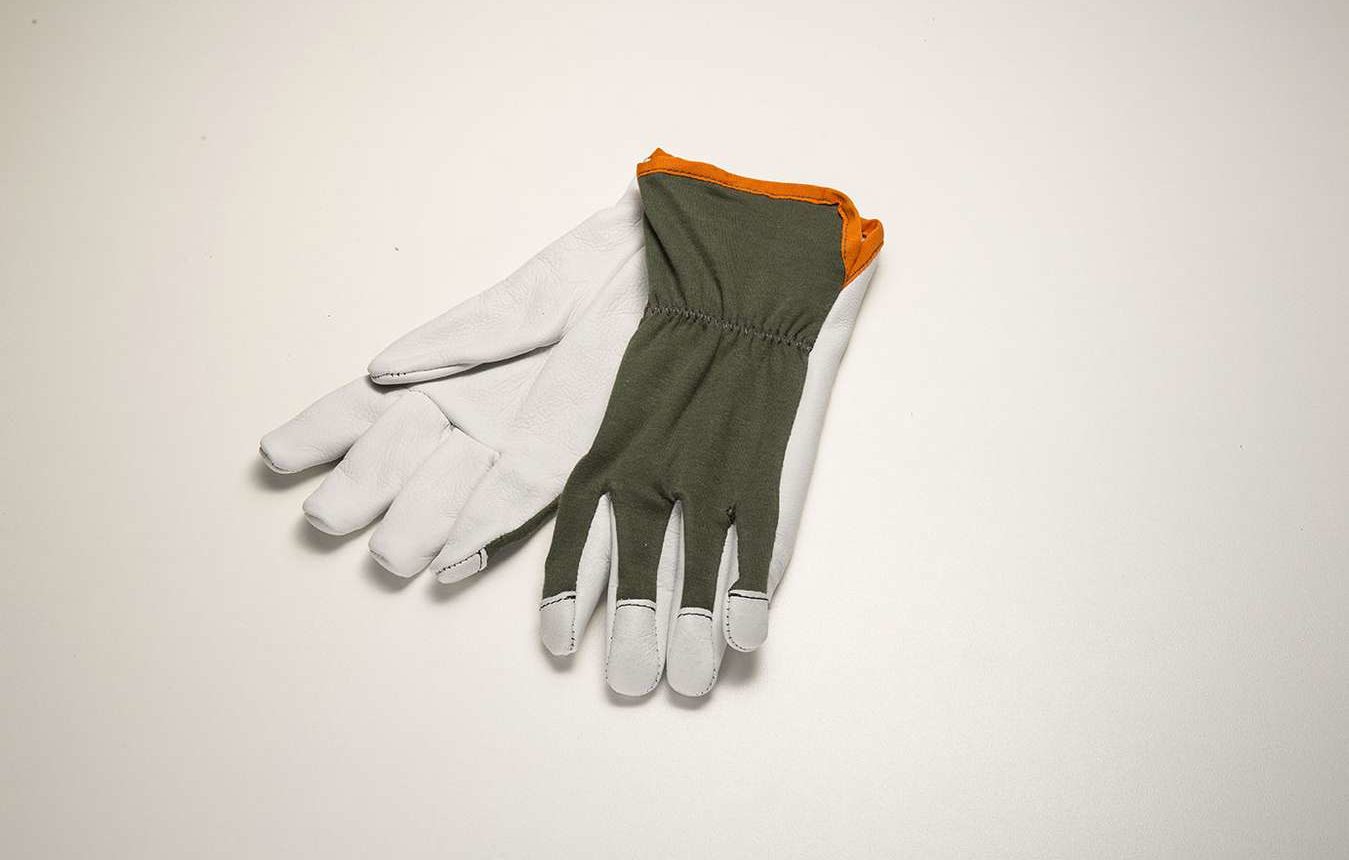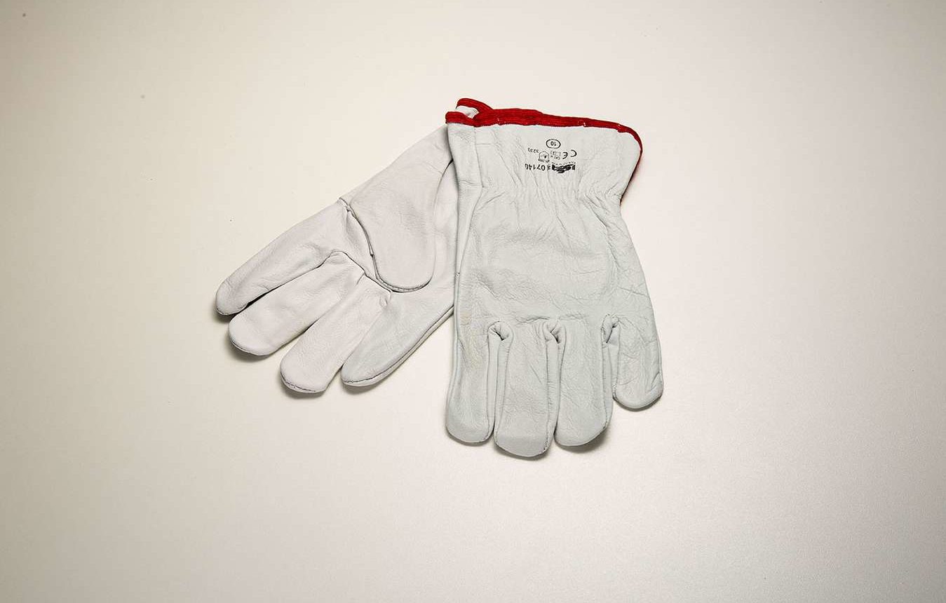 kožne rukavice (puna goveđa koža, janjeća koža, kozja koža) – većim dijelom šivane Kevlar koncem koji pruža veću otpornost na rezanje, paranje i otporan je na visoke temperature